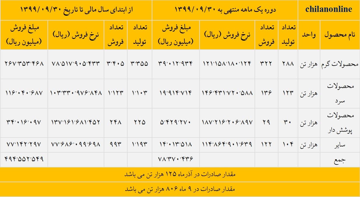 مقدار صادرات محصولات فولاد مبارکه در آذر ماه ، ۱۲۵ هزار تن و در در نه ماه منتهی به ۳۰ آذر ماه ۱۳۹۹، ۸۰۶ هزار تن بوده است.