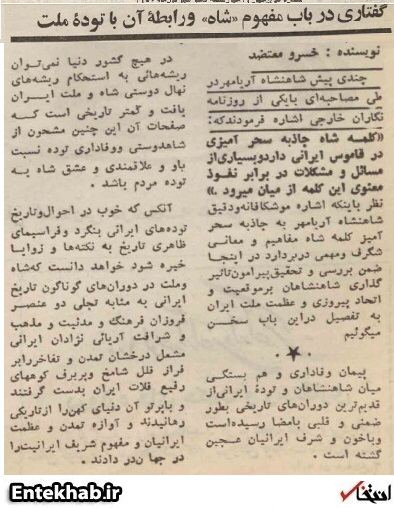 ۱۰شهریور ۱۳۵۰، خسرو معتضد چونان تملق «شاهنشاه آریامهر»را میکند که باور نمیکنی، او ۵۰سال بعد، با اعتماد به نفسی رشکبرانگیز، بعنوان یک مورخ مقابل زیباکلام نشسته و نقد آن دوران کند!