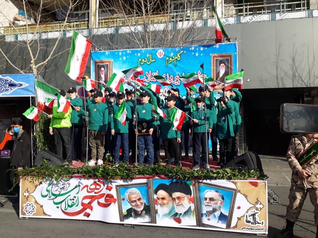 امسال هم در مسیر راهپیمایی به سمت میدان آزادی گروه های سرود دانش آموزی اجرا داشتند.
