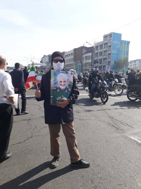 علیرغم اعلام برگزاری موتوری و خودرویی راهپیمایی، تعدادی از شهروندان با پای پیاده در مسیر منتهی به میدان آزادی راهپیمایی داشتند از جمله افرادی که با زدن ماسک و رعایت فاصله اجتماعی در میدان انقلاب تصاویر شهدایی مانند شهید حججی را در دست گرفته بودند.