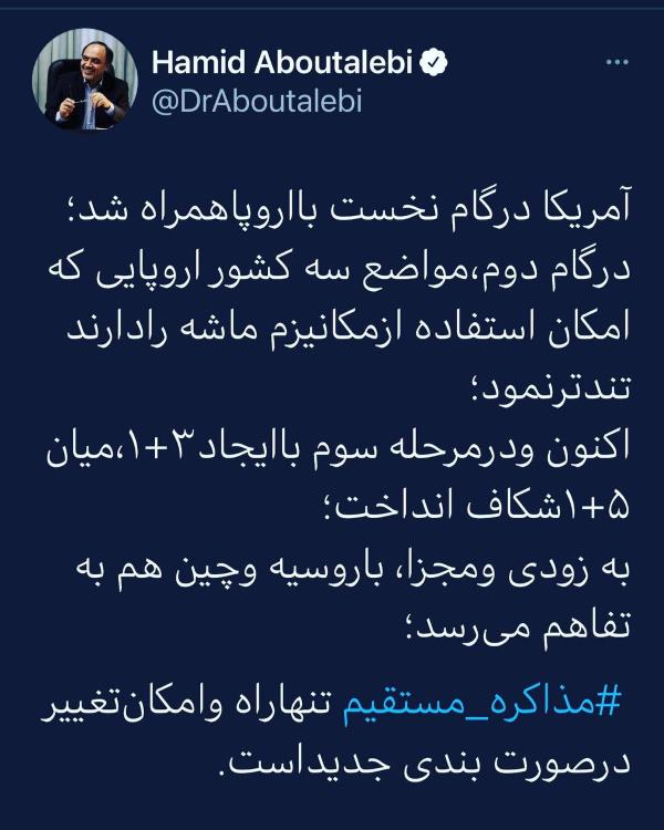 به زودی و مجزا، با روسیه و چین هم به تفاهم میرسد؛#مذاکره_مستقیم تنهاراه وامکانتغییر درصورت بندی جدیداست.