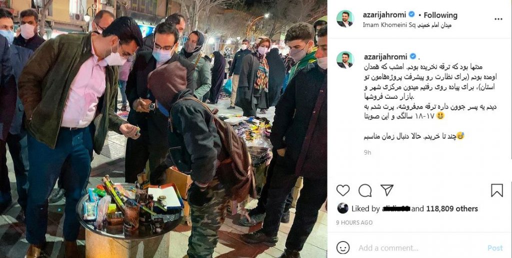 حالا چهره بیتجربه و تازهکار این دولت بار دیگر با شبیهسازی از بزرگان خود؛ با نیمنگاهی به انتخابات سخنانی بر زبان میآورد که در حد و اندازه ایشان نیست! او روز گذشته برای افتتاح و بررسی چند پروژه مخابراتی به شهر همدان سفر کرده بود، اما بهیکباره در یک پست اینستاگرامی نوشت: از یک پسر دستفروش چند تا ترقه خریدم؛ دنبال زمان مناسب میگردم!