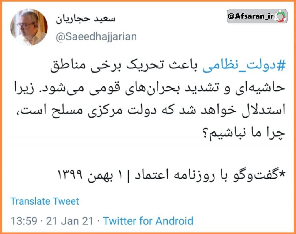 آیا این تهدید است: «سرنوشت حجاریان را تماشا کنید!»