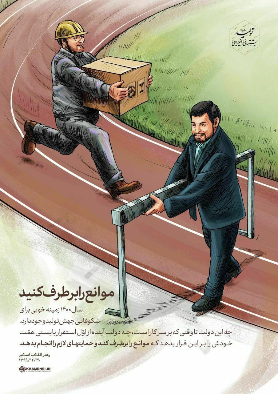 رفع مانع از تولید یعنی رفع همه موانع، ذهنی، ساختاری، فرایندی و عینی به شمول تحریم؛ یعنی آن مانع عمده و اساسی که از یک سو مانع واردات مواد اولیه، فناوری پیشرفته، سرمایهگذاری لازم و دانش مدیریت تولید و از سوی دیگر مانع صادرات محصول کار به همسایگان و جهانیان و بازگشت درآمدها میشود. بنابراین میلهها و زنجیرها و دیوارهای محدودیت تولید در دست آن کسی است که در قالب تحریمهای ظالمانه، راهبرد “صادرات ممنوع” ،”بازگشتن پول حاصل از تولید نفت وغیر نفت به کشور ممنوع” را عملیاتی میکند.