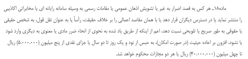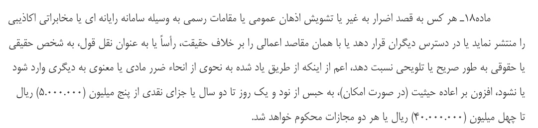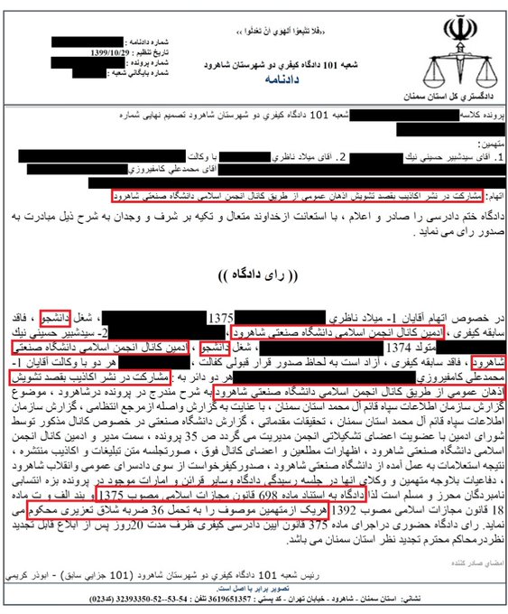 قاضی شعبه ۱۰۱ دادگاه کیفری ۲ شاهرود، بر خلاف قانون، دو موکل ۲۵-۲۶ ساله من را به دلیل انتشار چند مطلب انتقادی در یک کانال تلگرامی دانشجویی به تحمل ۳۶ ضربه شلاق محکوم کرده و این رای چند روز پیش قطعی شد؛ مجازاتی که اصلا در قانون برای جرم نشر اکاذیب رایانه ای وجود ندارد!