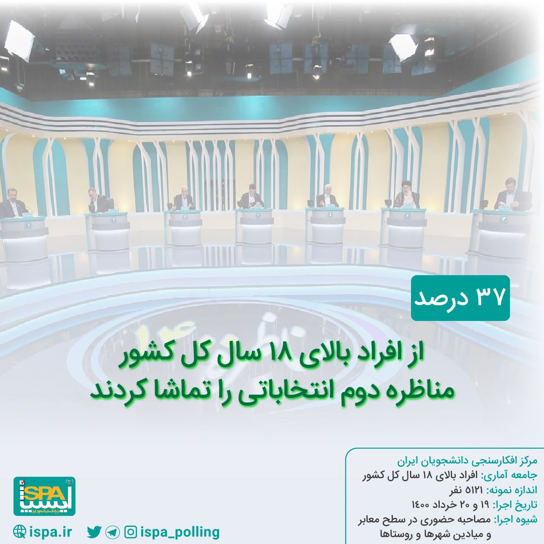 ۳۷ درصد از افراد بالای ۱۸ سال کشور، مناظره دوم انتخاباتی را تماشا کردهاند