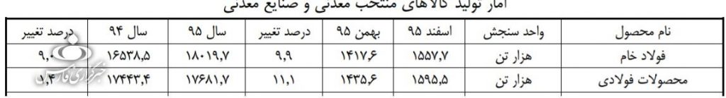 اما در سال 95 دوباره رونق به صنعت فولاد کشور بازگشت و شاهد رشد 9 درصدی تولید فولاد خام بودیم به طوری که میزان تولید فولاد خام در این سال به 18 میلیون تن رسید و در عین حال، تولید محصولات فولادی نیز با رشد 1.4 درصدی نسبت به سال 94، به 17 میلیون و 681 هزار تن افزایش یافت.