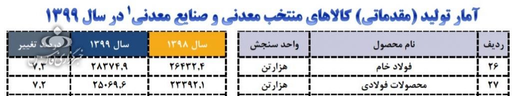 - رشد سالانه یک میلیون تنی تولید فولاد