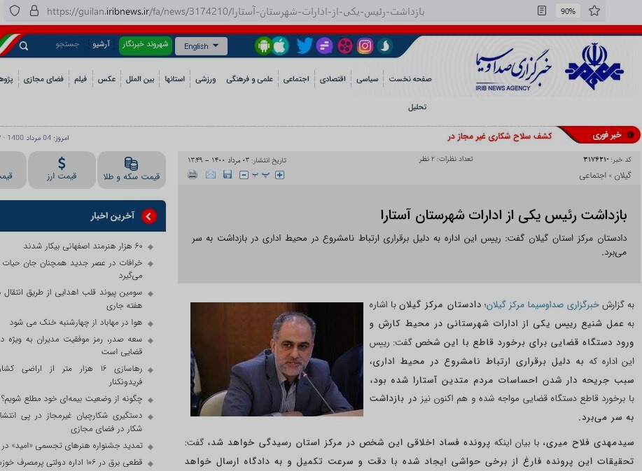 خبرگزاری رکنا هم با انتشار تصاویری تکان دهنده که بخشهایی از آن پوشیده شده در این باره نوشت: رئیس بیمه سلامت آستارا وقتی با یک زن شوهردار خلوت شیطانی کرده بود لو رفت. رئیس بیمه سلامت آستارا توسط مردم خشمگین و درحالیکه برهنه بود از ساختمان اداری اش بیرون کشیده شد و به شدت کتک خورد. رئیس بیمه سلامت آستارا پس از انتشار فیلم برهنگی اش و عکس های خلوتی اش با زن متاهل در محل کارش بازداشت شد و بعد از این فاجعه رئیس بیمه سلامت آستارا برکنار شد.