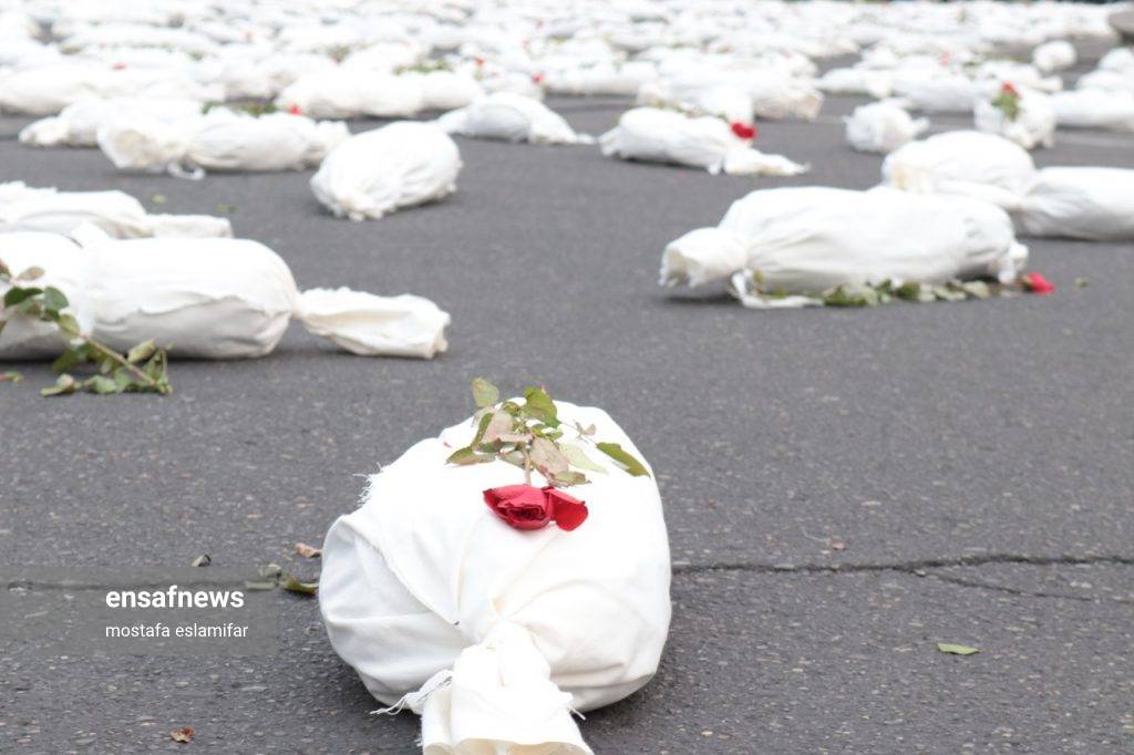 ۲۲ آبان، میدان فلسطین تهران با اثر چیدمانی سمفونی «کشتهگان»، جلوهای نمادین از این هزاران کودک بود.