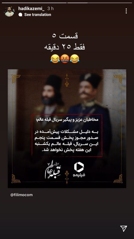 متن کامل اطلاعیهی «فیلیمو» و واکنش چند بازیگر «قبله عالم» دربارهی توقیف این سریال را در ادامه میخوانید: