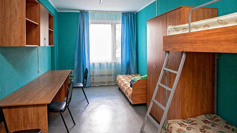 اسکان دانشجو یکی از بزرگترین دغدغههای دانشجویان بین المللی است. خوشبختانه روسیه امکانات و تجهیزات اقامتی عالی را در اختیار دانشجویان قرار میدهد. از این اکثر دانشجویان هنگام تحصیل در روسیه ترجیح میدهند در خوابگاه زندگی کنند. یکی از مزایای اقامت در خوابگاه، نزدیک بودن آنها به واحدهای آموزشی و هزینه اقامت بسیار کمتر نسبت به اجاره آپارتمان یا خانه است.دانشجویان در اتاقهای ۳ـ۲ نفره ساکن میشوند. هر اتاق دارای مبلمان و ملافه است و دانشجو فقط موظف به خرید برخی از وسایل مانند ظرف، وسایل شخصی و … میباشد. سیستم تهویه خوابگاهها به گونهایی است که با وجود سرمای شدید زمستان، دمای داخل خوابگاه تقریبا ۲۲+ درجه سانتیگراد است.