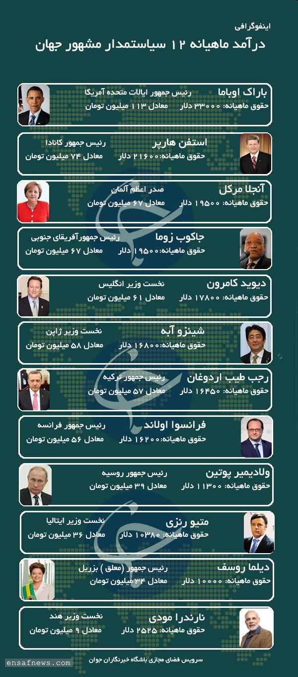 اینفوگرافی | فیش حقوقی سیاستمداران مشهور جهان