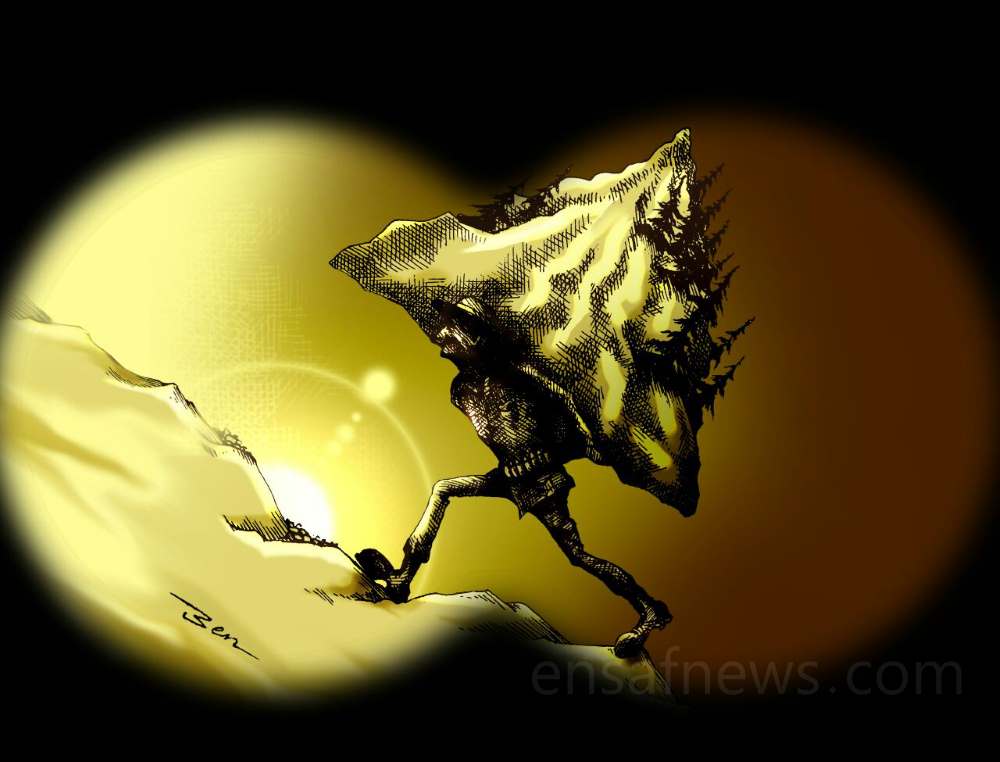 کارتونی از انصاف نیوز، «بنیامین آل علی» با عنوان «بی پناهان طبیعت».