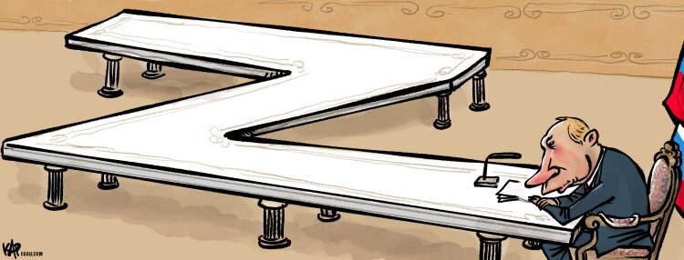 تلاشها برای مذاکره زلنسکی با پوتین برای پایان دادن به جنگ روسیه و اوکراین، سوژه کارتونی از جیمز کاپدویلا در سایت کگل شد.