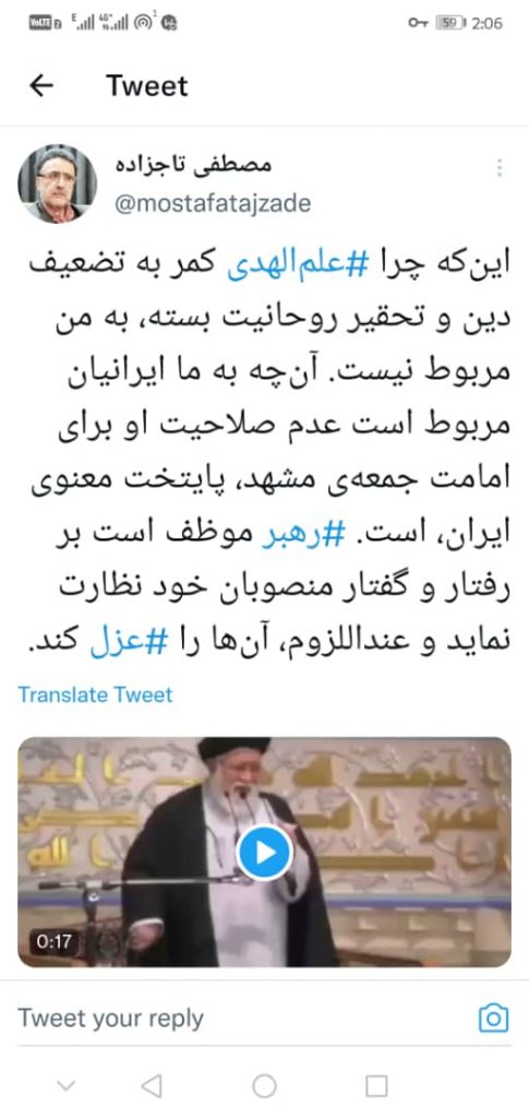 عکس | تاجزاده: علمالهدی صلاحیت ندارد و تصویر بدی نشان میدهد