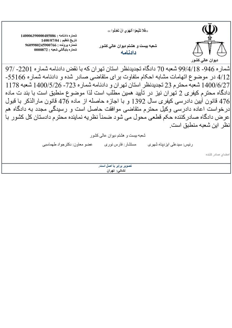 در بخشی دیگر از این نامه آمده است: بنده هیچ ادعایی و انتظاری جز اجرای عدالت ندارم و اتفاقاً گناه خود را به عنوان ورشکسته به تقصیر میپذیرم و تنها طبق شرع اسلام و طبق مقررات و قوانین موضوع درخواست در نظر گرفتن فرصتی برای انجام تعهدات را دارم، فرصتی که مدعیام به گواه تحویل حدود ۱۶ هزار خودرو در گذشته و واگذاری تمامی داراییام به هدف پرداخت مطالبات تا آخرین لحظات، هم توان استفاده از آن را اثبات کردهام و هم اهلیت و صلاحیت دریافت آن را.