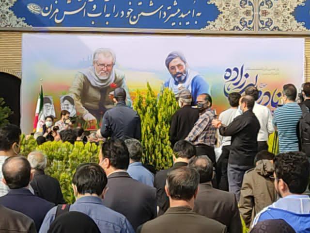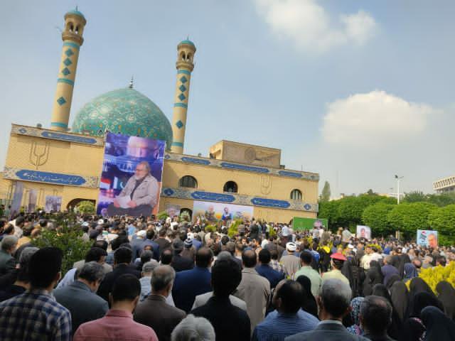 مراسم تشییع نادر طالب زاده از مقابل مسجد بلال صدا و سیما با اجرای صابر خراسانی شعرخوانی علیرضا قزوه و مداحی صادق آهنگران برگزار شد