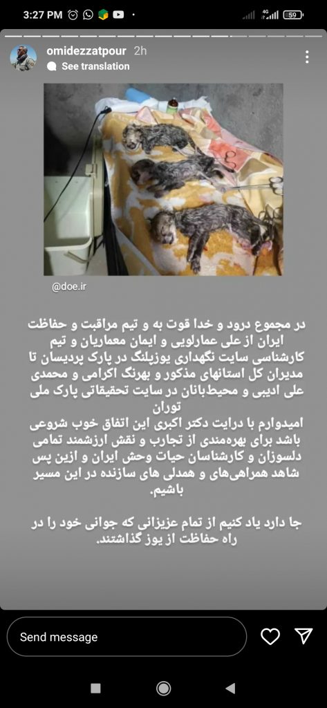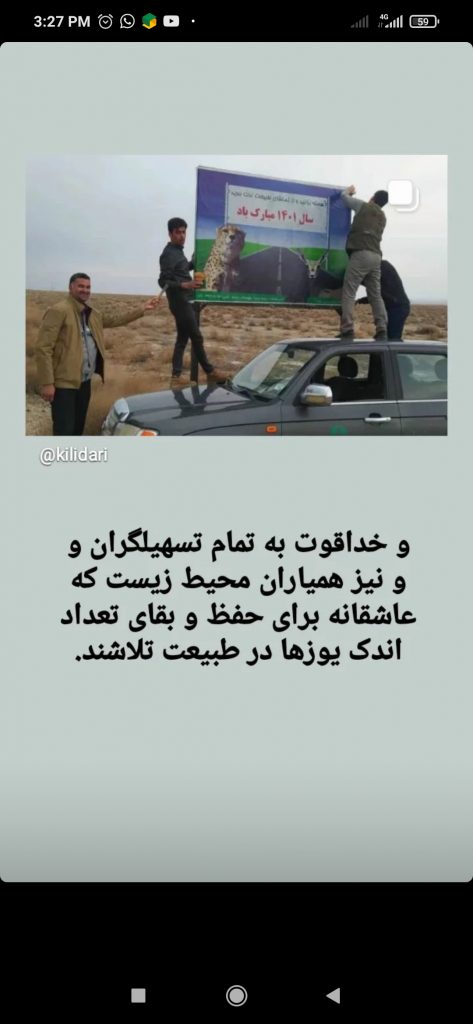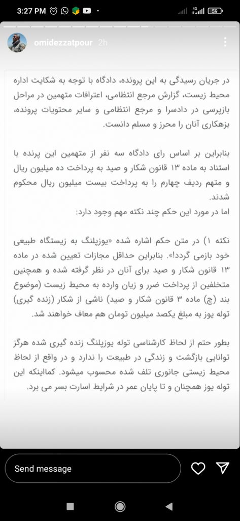 امید عزت پور فعال محیط زیست در صفحه اینستاگرام خود منتشر کرد:
