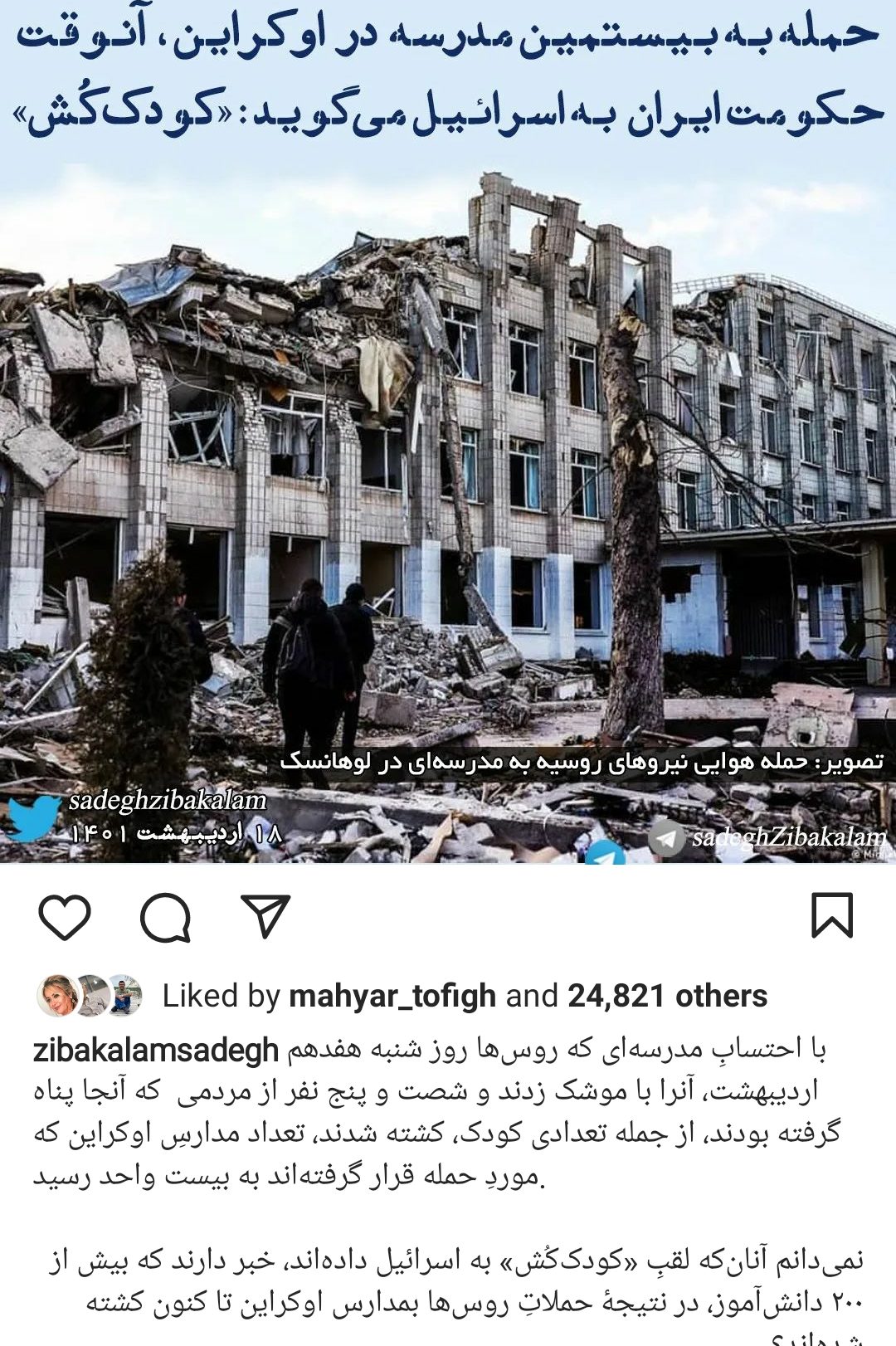 عکس | واکنش زیباکلام در پی حمله روسیه به مدارس 20 اردیبهشت 14012 زمان مطالعه کمتر از یک دقیقه انتهای پیام برچسب هاجنگ روسیه و اوکراین روسیه و اوکراین صادق زیباکلام 20 اردیبهشت 14012 زمان مطالعه کمتر از یک دقیقه فیسبوک توییتر لینکداین پینتریست واتس آپ تلگرام اشتراک گذاری با ایمیل چاپ