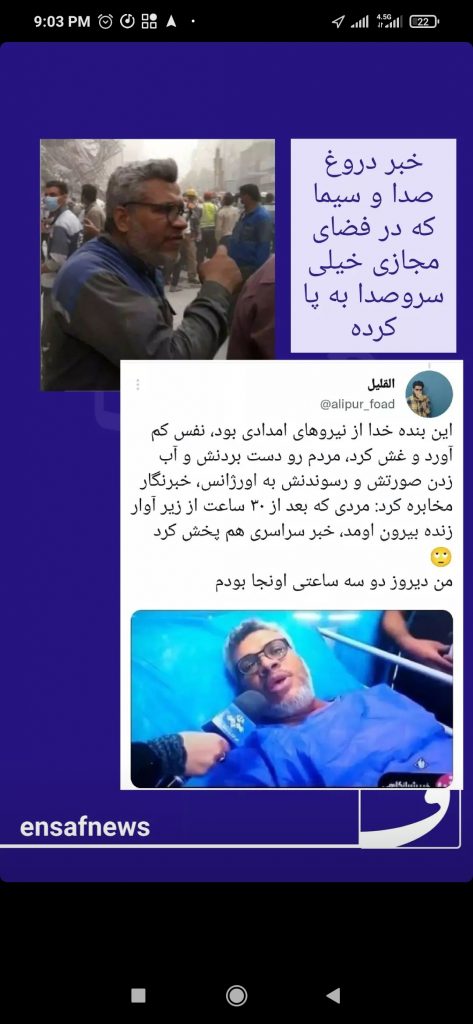 عکس | هم امدادگر هم آسیب دیده در صدا و سیما 4 خرداد 14010 زمان مطالعه کمتر از یک دقیقه به نقل از اینستاگرام انصاف 4 خرداد 14010 زمان مطالعه کمتر از یک دقیقه فیسبوک توییتر لینکداین پینتریست واتس آپ تلگرام اشتراک گذاری با ایمیل چاپ