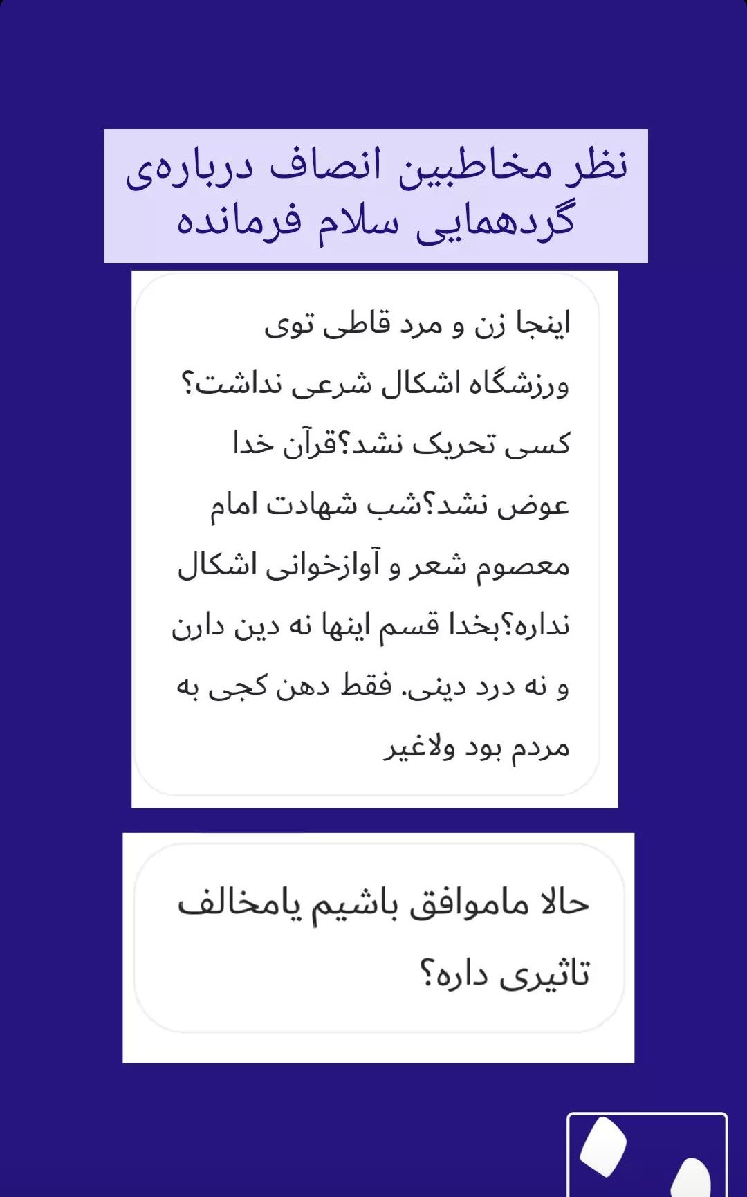 این فیلموباید نشون فیفا بدیم که به بهانه کرونا اجازه نمیدن ظرفیت ورزشگاه تکمیل بشه به بهانه زیر ساختها اجازه نمیدن خانمها به ورزشگاه برن!…. و درضمن به مراجع تقلید هم نشون و امامان جماعت مثل علم الهدی نشون بدن که هم حضور زنان قاطی پاتی مشکلی نیست هم شب شهادت آوازه خونی مختلط خانمها و آقایان هیچ مشکل شرعی نداره