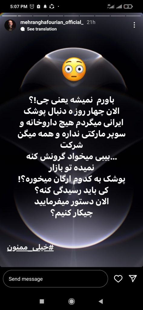 عکس | استوری اعتراضی مهران غفوریان درباره نایاب شدن پوشک