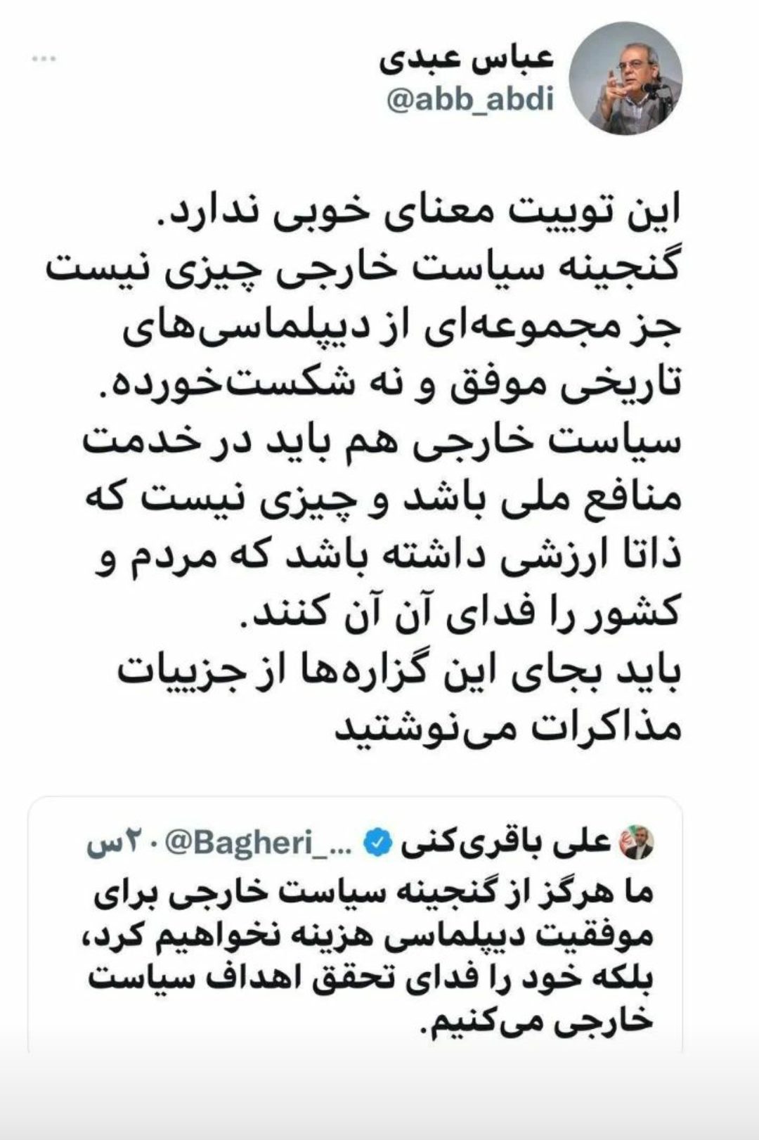 پاسخی از عباس عبدی به علی باقری کنی 26 خرداد 14010 زمان مطالعه کمتر از یک دقیقه انتهای پیام برچسب هاعباس عبدی علی باقری کنی 26 خرداد 14010 زمان مطالعه کمتر از یک دقیقه فیسبوک توییتر لینکداین پینتریست واتس آپ تلگرام اشتراک گذاری با ایمیل چاپ