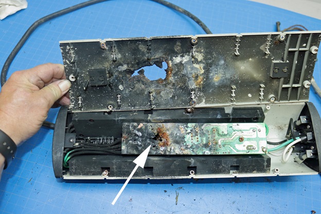 • دیگر علت خرابی محافظ برق برخورد آب به بدنه و قسمتهای داخلی آن است چنانچه آب به قسمتهای مختلف یک محافظ برق برخورد کند باعث ایجاد اتصال کوتاه و در نتیجه خرابی در محافظ برق می شود حتی گاهی محافظ برق در اثر برخورد با رطوبت یا آب خواهد سوخت.