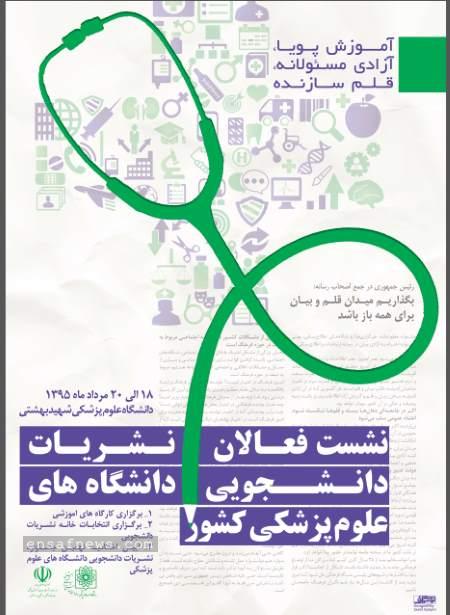 نشست فعالان نشریات دانشجویی دانشگاه های علوم پزشکی سراسر کشور با شعار آموزش پویا، آزادی مسئولانه، قلم سازنده برگزار می شود.
