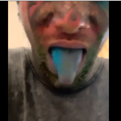 تتلو در فیلمی که منتشر کرده است زبان خود را بیرن میآورد که به رنگ آبی است و به نظر میرسد زبانش را هم تتو کرده است.