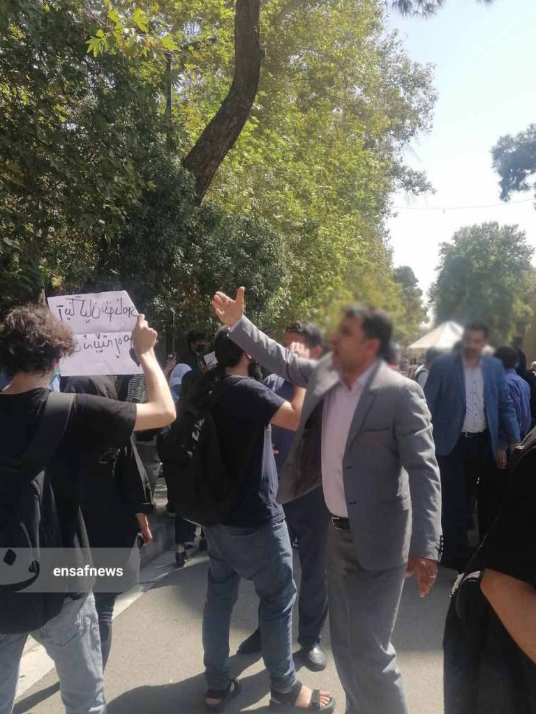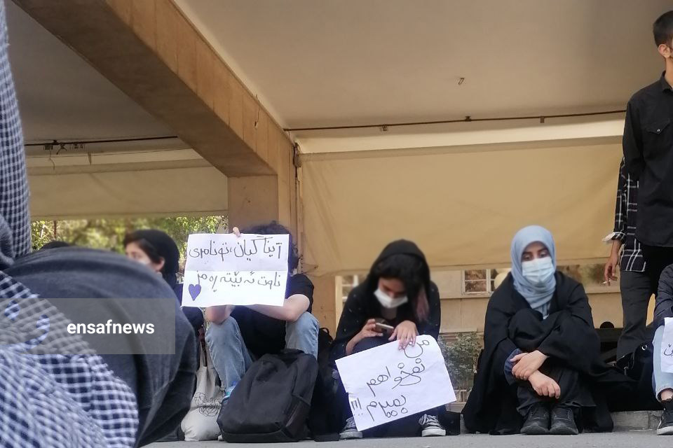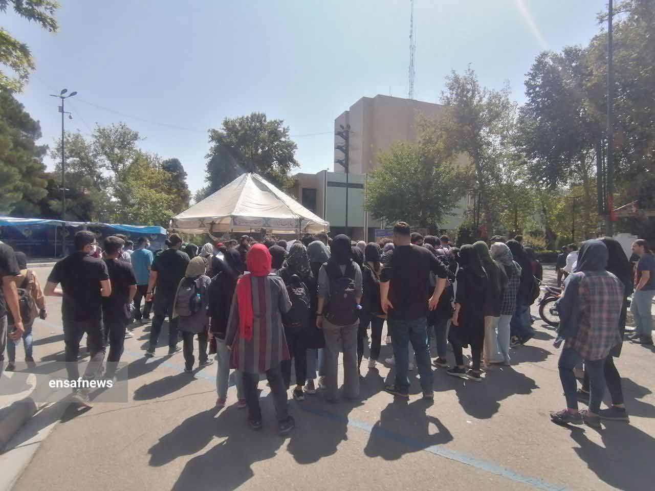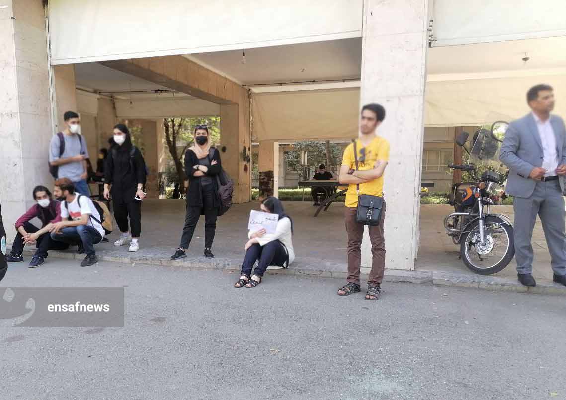 بعد از ساعت نهار و نماز دانشجویان این دانشکده از بالای چهارراه مسجد شروع به تجمع و شعار دادن کردند. شعارها و یادداشتهای که در دست دانشجویان بود در یادکرد مرگ دلخراش ژینا امینی و برخورد گشت ارشاد با زنان بود. چند دقیقهی بعد ماموران حراست دانشگاه در محل حاضر شدند. مردی که هیبت بلندقامتی داشت در مرکز این جمع آمد و از آنان خواست که بهسرعت متفرق شوند. حلقهی اطراف او خالی شد و چند قدم آنطرفتر دوباره دانشجویان به یکدیگر پیوستند و به راه خود و شعار دادن ادامه دادند.