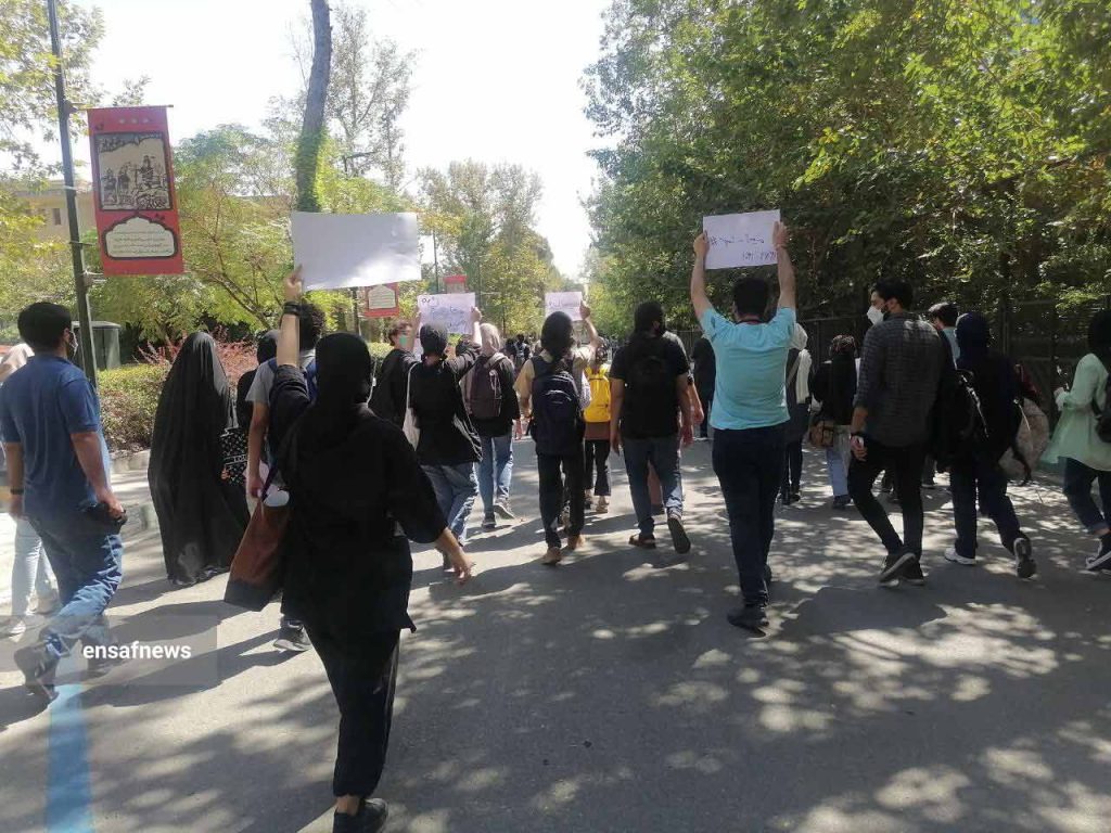 امروز یکشنبه،27 شهریور جمعی از دانشجویان هنرهای زیبای دانشگاه تهران در اعتراض به مرگ مهسا امینی (ژینا امینی) و برخوردهای گشت ارشاد، در صحن دانشگاه تجمع کردند. این تجمع که با صدای بلند دانشجویان شروع شد با برخورد حراست دانشگاه به تجمع همراه سکوت دانشجویان ختم شد.