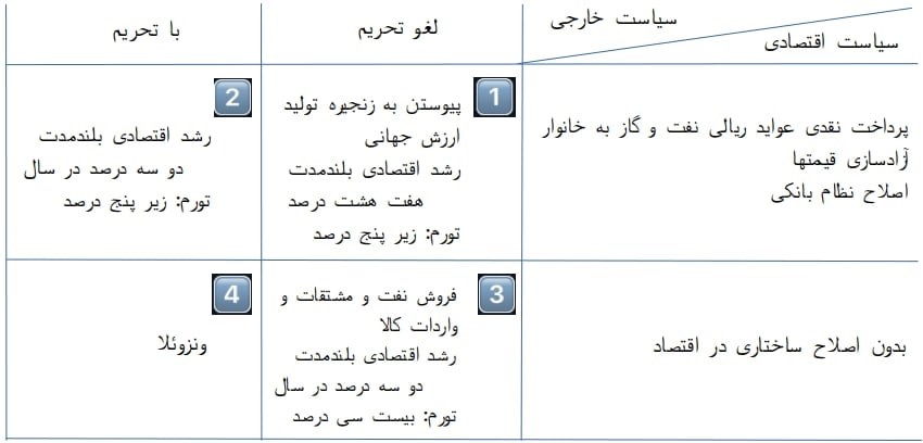 این جدول نسبت اصلاح سیاست خارجی و اصلاح سیاست اقتصادی، و همافزایی بین این دو را نشان میدهد.