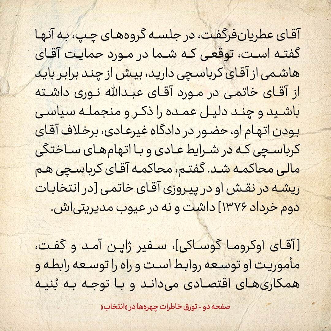 «دادگاه غیرعادی عبدالله نوری و دادگاه عادی با اتهامات ساختگی کرباسچی» در خاطرات هاشمی رفسنجانی