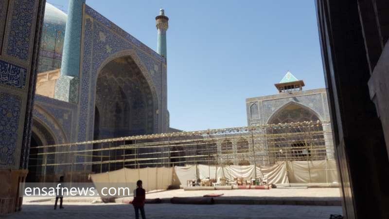 بالاخره بعد از سالها با خانواده در شهریور امسال سفری به قصد گردشگری به اصفهان داشتیم. اصفهان نصف جهان با چاذبه های انکارناپذیرش با میدان نقش جهانش که در جراید خارجی به عنوان زیباترین میدان جهان شناخته و معرفی شده است. در انتهای میدان مسجد شاه (امام) قرار دارد که مگر میشود به اصفهان بروی و به آنجا سری نزنی؟ ما هم شاد و خندان همینکار را کردیم ولی پس از ورود به مسجد شاه، نگین هنر معماری ایرانی اسلامی، با صحنهای زشت و زننده و نابجائی روبرو شدیم که واقعاً شوک آور بود، تمام محوطه حیاط این بنای با شکوه پر شده بود از جنگل داربستهای فلزی بسیار زشت که شکوه و زیبائی و عظمت این بنای تاریخی را در خود پنهان کرده بود.