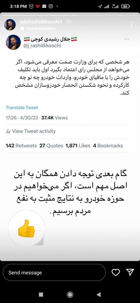 استوری نماینده مجلس درباره «مافیای خودرو»