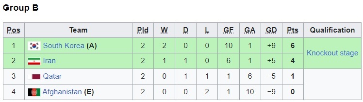 گروه دوم: ایران _ افغانستان _ کره جنوبی _ قطر