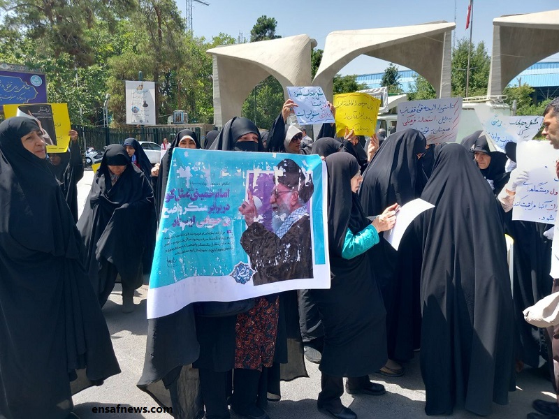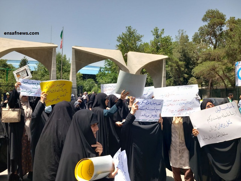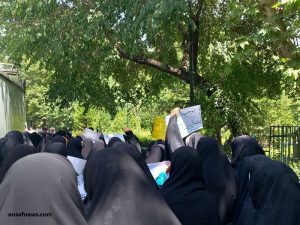 با پایان نماز خانمها هم با مقواهایی به سمت سردر دانشگاه میرفتند. بین واگویههای جمعیت شنیده میشد که از این مسیر در دانشگاه مسئولان برمیگردند و حرفشان را میشنوند.