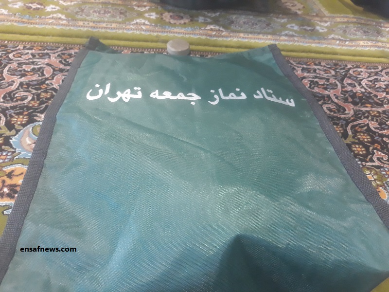 چند نفری پشت به موانع و رو به مردم روی صندلیهای پلاستیکی نشستهاند و فرد جوان کت و شلواری که انگشتری عقیق بر دست دارد و بر روی کت او لوگوی «ستاد نماز جمعه» نقش بسته مسئول آنهاست.