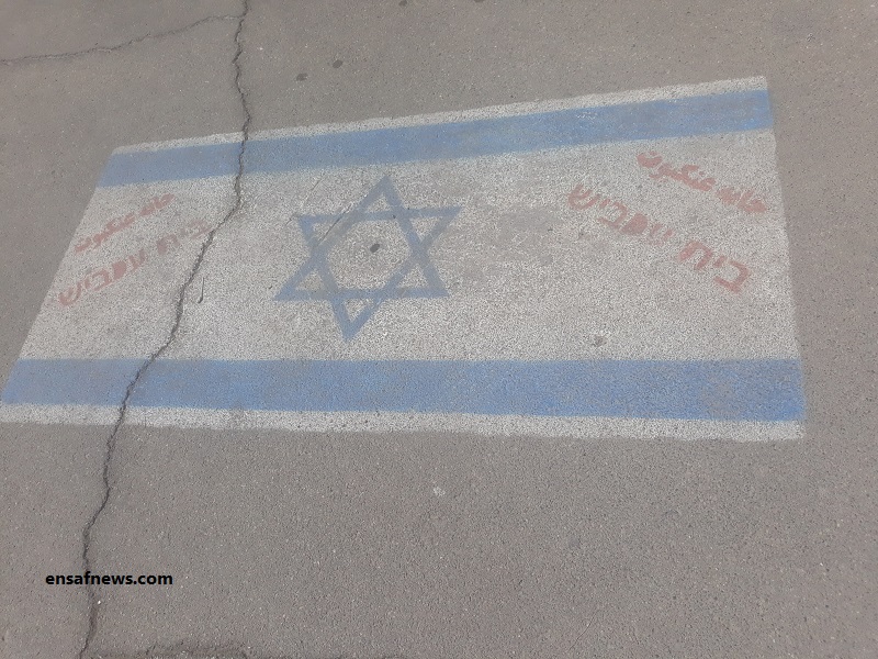 بیرون در اصلی دانشگاه تهران و بر روی زمین نقش کمرنگی از پرچم اسرائیل دیده میشود که ظاهرا نمازگزاران در روز جمعه و «دانشجویان انقلابی» در روزهای دیگر هنگام ورود به دانشگاه آن را لگدکوب میکنند.
