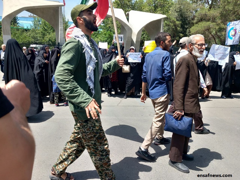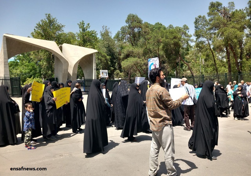 زنی از بین جمعیت میگفت کاش شما هم چادر سر میکردید زن دیگری به او میگفت عیبی ندارد همین که با ماست خدا خیرش بدهد و برای اطمینان از خبرنگار انصاف نیوز میپرسد که «با ما هستی دیگر؟!».