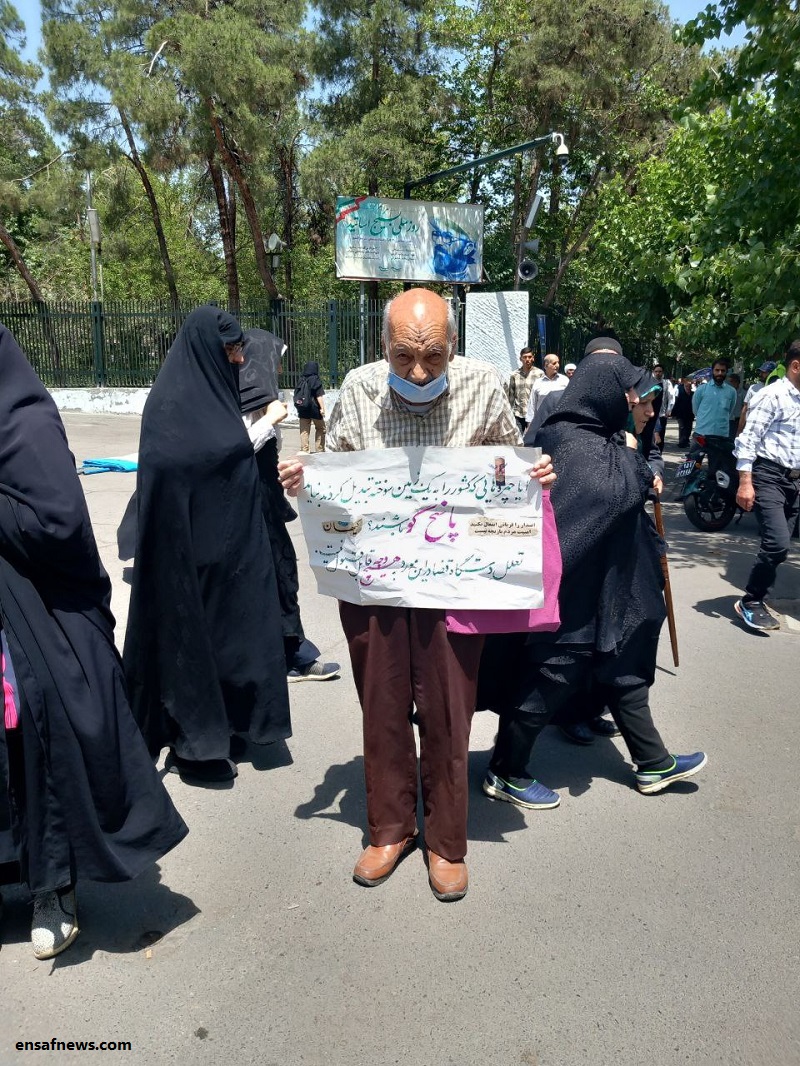 پیرمردی که کنار او نشسته میان حرفش میپرد که «رهبر خوبی داریم ولی بقیه نه؛ البته احمدینژاد هم خوب بود»