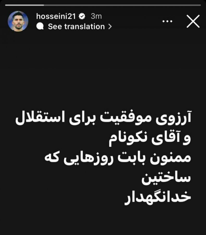 «آرزوی موفقیت برای استقلال و آقای نکونام. ممنون بابت روزهایی که ساختین. خدانگهدار.»