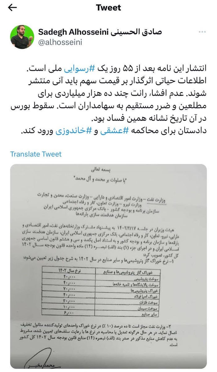 حالا انتشار مصوبه نرخ خوراک صنایع، 50 روز بعد از تصویب، پرونده آن سقوط آزاد را نزد افکار عمومی و فعالان بازار سرمایه باز کرده است. یک ابهام بزرگ این است که صف فروشهای آن روزها به دلیل برخورداری از رانت اطلاعاتی شکل گرفته است. به بیان دیگر، گفته میشود افرادی در قالب شخصیت حقیقی یا حقوقی، از کاهش حاشیه سود صنایع گازخور اطلاع داشتهاند و سبد خود را از سهام این شرکتها خالی کردهاند.