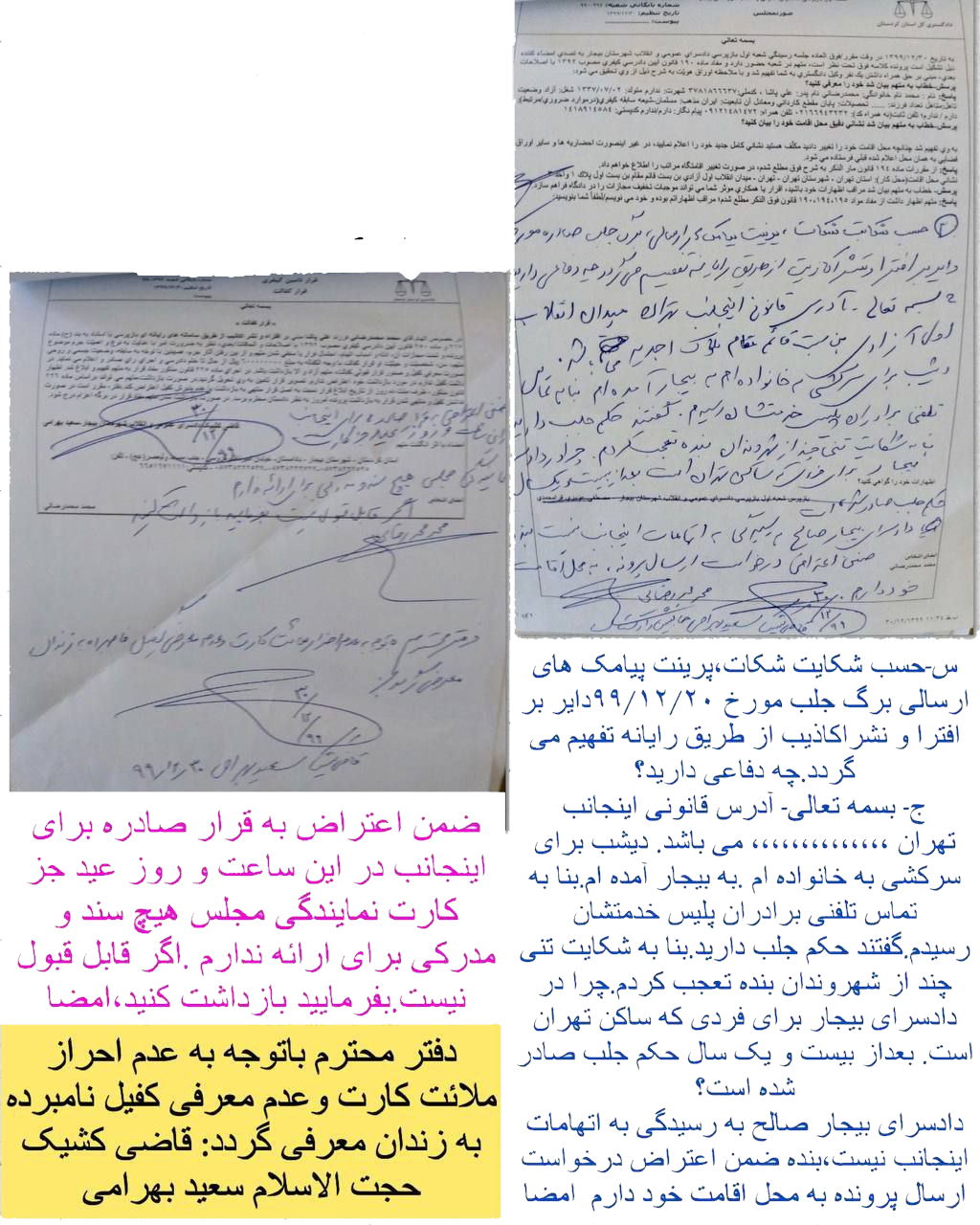 این نمایندهی ادوار اضافه کرد: از همهی اینها گذشته شاکی نخست پرینتی را تحویل دادسرای بیجار داده است که اکانت آن متعلق به خود وی بوده و زمان ورود همان مطلب به تلگرام دو سال قبل از طرح شکایت است. شاکی در شکایت خود نگارش همان مطلب را نیز به افراد ناشناس نسبت داده و محل نشر آن را نیز کانالی موسوم به بیجار معرفی کرده است.