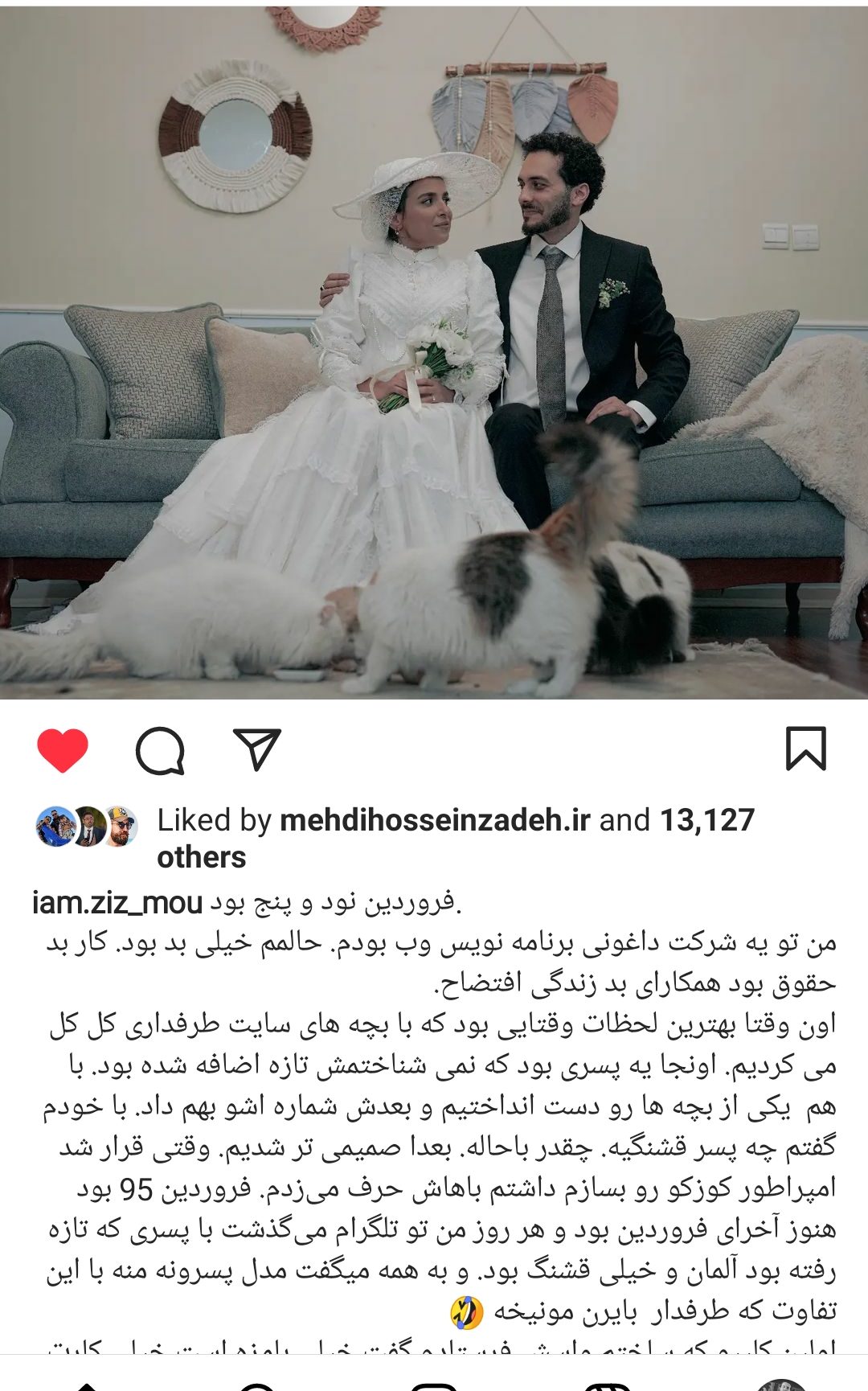 زینب موسوی خالق شخصیت امپراطور کوزکو، که چندی پیش مجبور به جلای وطن شده بود از ازدواج خود خبرداد. انتهای پیام