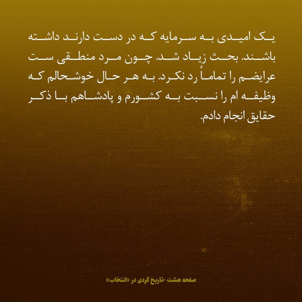 انتخاب نوشت: یادداشتهای اسدالله علم: نامهای از [هوشنگ] انصاری، سفیر خودمان در واشینگتن، شکایت از دست حرکات [اردشیر زاهدی] وزیر خارجه، رسیده بود. دادم ملاحظه فرمودند. اوقات تلخ شدند، ولی، چون حالا به جهاتی به اردشیر مرحمت دارند، فرمودند این کار را خودت اصلاح کن. این بود که اجازه خواستم اردشیر را که برای شرکت در مجمع عمومی سازمن ملل رفته است و انصاری هر دو را بخواهم و کار را به اصلاح بگذرانم. اجازه خواستم اگر اصلاح نشد تندی کنم، فرمودند بکن!