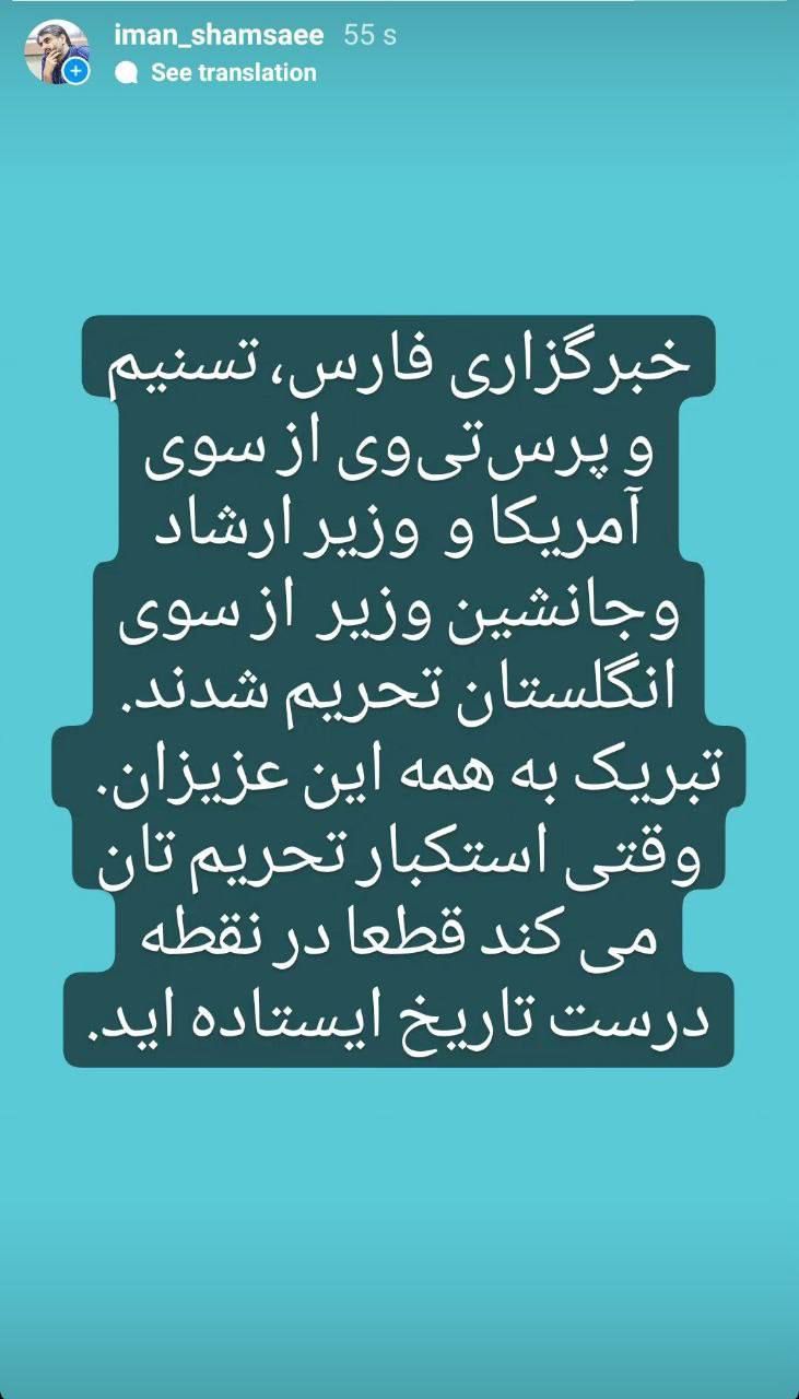 ایمان شمسایی در صفحهی اینستاگرام خود نوشت: