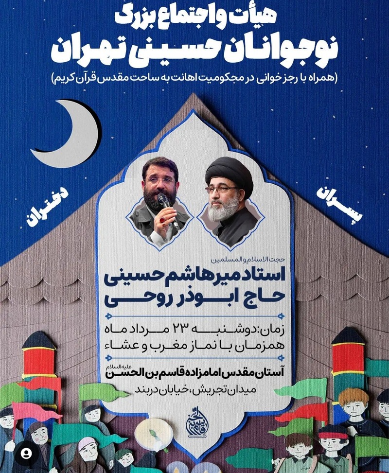 ابوذر روحی در تجمعی با حضور دختران و پسران نوجوانان مداحی خواهد کرد.